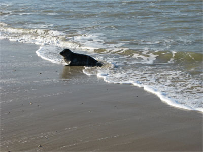 Wandelend langs het strand is het moeilijk een zeehond te zien. Om de 3 minuten moeten ze lucht halen. In die tijd kunnen ze ca 200 meter afleggen. Vaak komt alleen hun hoofd boven water en vallen ze nauwelijks op tussen de meeuwen. Rond de koppen van de strekdammen zoeken ze vaak naar voedsel en kan je ze soms zien.
